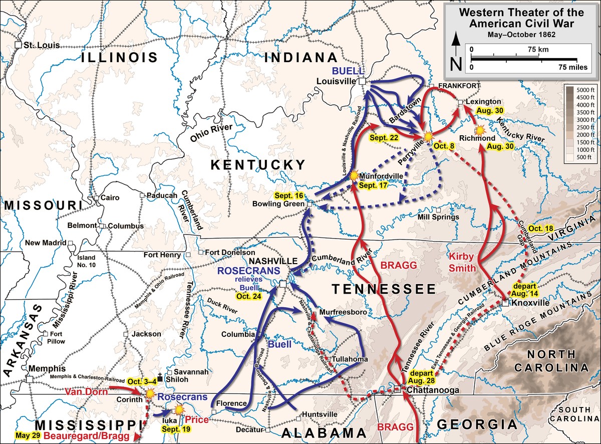 With Pemberton now promoted to lieutenant general, Davis also had to deal with General Braxton Bragg in the west. In August 1862, Bragg launched an offensive into Kentucky. The goal of this offensive was to win the support of the Kentucky people and have Kentucky secede from the Union. This campaign came to a culmination at the Battle of Perryville. This battle took place on October 8 and was a tactical victory for the Confederates. However, after the battle, Bragg lost confidence and decided to leave Kentucky and end the campaign five days later.