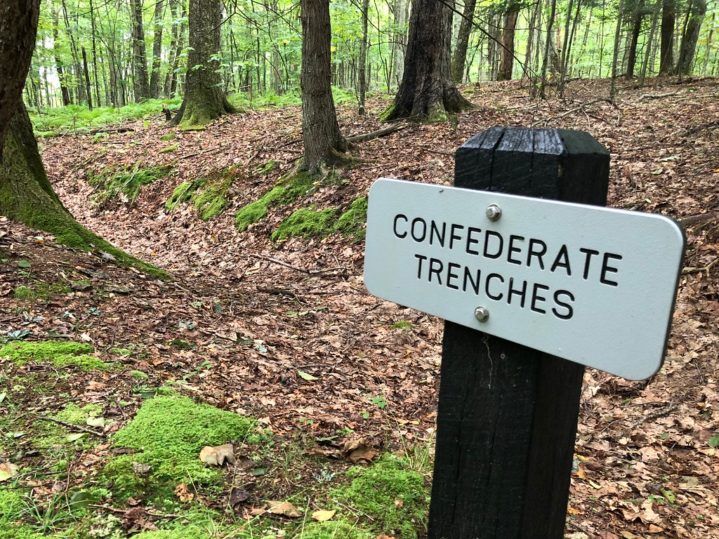 Each of the hiking trails at Droop Mountain Battlefield State Park is full of historical significance. For example, Musket Trail is characterized by the stumps of American Chestnut trees that stood at the time of the battle and viewing these stumps can give viewers a sense of the historic aura of this natural environment. In addition, following the cliffs on Overlook Trail provides visitors with a scenic overlook of Civil War-era trenches that were utilized by the combatants at Droop Mountain. Furthermore, Minie Ball Trail, described on the WVSP site as “the most rigorous park trail,” is situated in a ravine where Union troops climbed Droop Mountain to attack the entrenched Confederates above them. Hiking along this trail can instill in visitors a feeling of being in the shoes of the Union soldiers and a sense of awe at what it would have felt like to climb the steep mountain slopes in the chaos of battle.